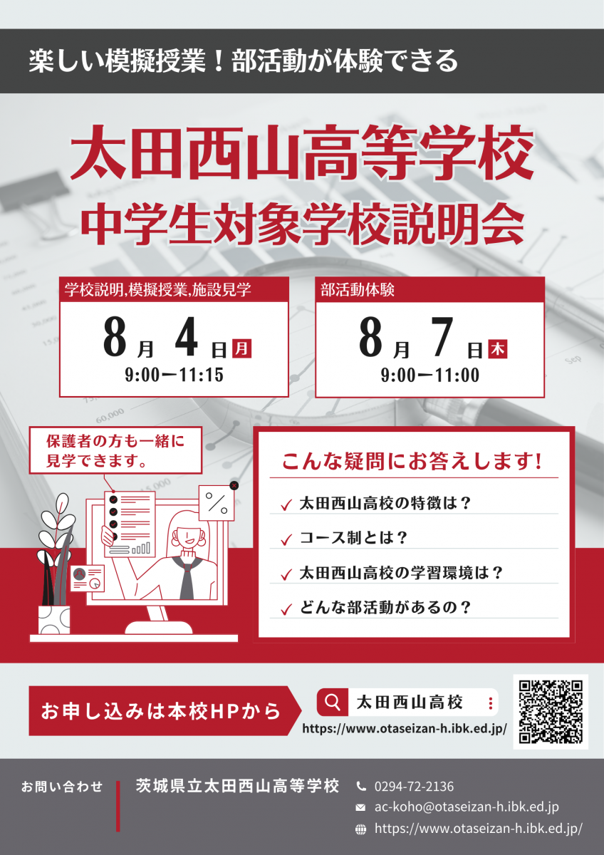 令和7年度 太田西山高等学校 夏の学校説明会実施について