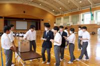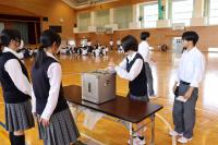 全校生徒が体育館に集まり、生徒会役員選挙を行いました。立会演説会では、各立候補者と推薦者が全校生徒の前で自信をもって話をすることができていました。熱心な生徒会役員により、引き続き活発な生徒会活動が行われることを期待します。